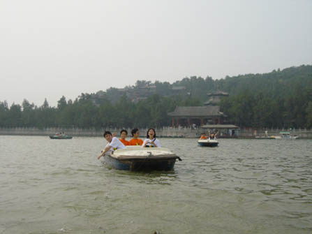 佳人在側,泛舟昆明湖上,想當年多少才子佳人,王孫貴族,金枝玉葉,花前月下,多浪漫的事啊……可如今,看他們這樣的情景,哪是泛舟,呵呵,該叫飚舟才對,哈哈。