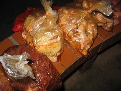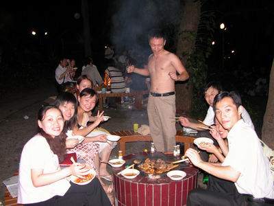 有燒烤的極品——牛肉、雞腿、雞翅、豬排……,另外還配備飲料、水果、最重要的是月餅……西西