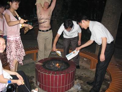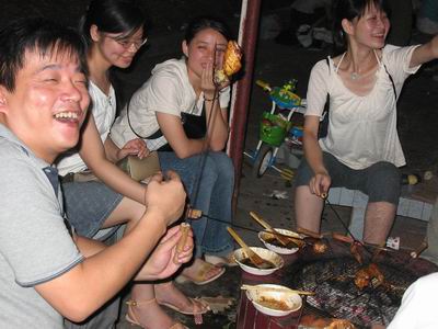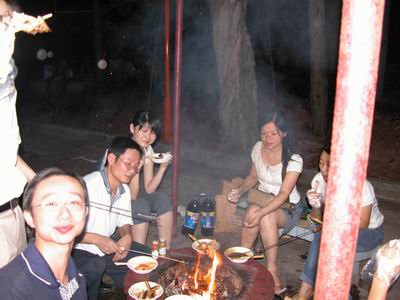 有付出就有收獲,星星之火雖小,經一翻人的共同努力,卻也燃起了燎原之勢,很快的,大家就吃起了香蓬蓬的雞腿
