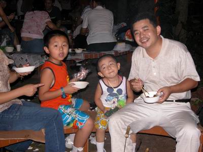 孫總連同家屬也出場了本次的慶祝活動,看他們父子三人,吃得不亦樂乎!