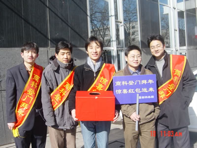 2005年新年伊始,幸福祥和的氣氛帶給我們無盡的歡樂!讓我們一起,去北京看看咋們的商科新年利是派送現場!