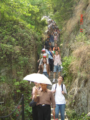 站立在1028級(jí)的“天階”上,我們放眼遠(yuǎn)眺,滿山蓊郁蔥蘢,蒼翠欲滴