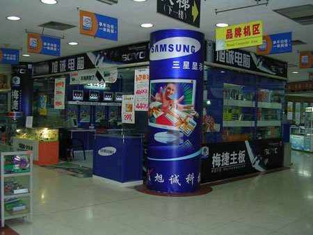 新建成的一期工程,其所有專賣店都是TL、MS、SY的圖片,形象統一,對產品的宣傳是一個很好的銷促方法。二期工程將于近期開始動工,相信在重慶分公司全體同仁的努力下,我們旗下三個品牌的專賣店在重慶各大電腦賣場,會是一道亮麗的風景線。