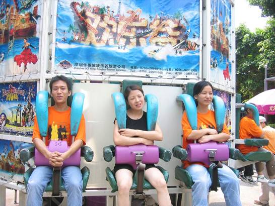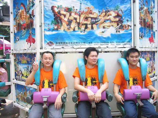 歡樂(lè)谷招牌項(xiàng)目:太空梭,你看中間那位帥哥是多么忐忑不安
