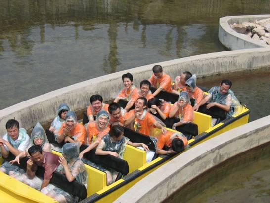 叢林漂流:我們幾位壯士在團(tuán)團(tuán)轉(zhuǎn)的皮艇上慘遭兩支水炮的“蹂躪”,個(gè)個(gè)變了“落湯雞”
