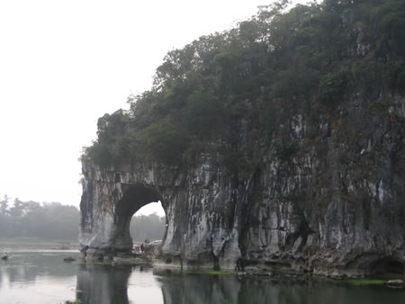 象鼻山地處桂林市的漓江與桃花江匯流處,園內自然山水與人文景觀交相輝映,山、水、洞、亭、臺、坪,文物古跡相映成趣,美不勝收。因為象山酷似一頭大象,栩栩如生,因此被人們定為桂林市的象征。象山山體前部的水月洞彎如月亮,穿透山體,清澈的江水從洞中穿鼻而過,波光洞影構成了“水底有明月,水中明月浮”的奇景,“象山水月”因此成為桂林山水一絕。