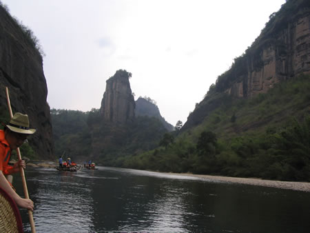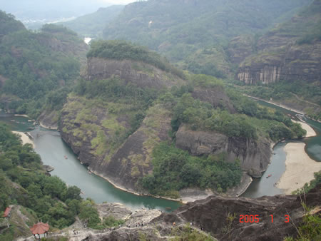 武夷山風(fēng)景區(qū)東西寬約5公里,南北長約14公里,面積60平方公里。有九曲溪、溪南、水簾洞、碧石巖、桃源洞、三仰峰、武夷宮、云窩等景點(diǎn),屬典型的丹霞地 貌,素有“碧水丹山”、“奇秀甲東南”之美譽(yù),是首批國家級重點(diǎn)風(fēng)景名勝區(qū)之一,被國際旅游組織執(zhí)委會主席巴爾科夫人稱為“世界環(huán)境保護(hù)的典范”。武夷山是《洞天福地記》(杜光庭)里的三十六洞天之一。“三三秀 水清如玉,六六奇峰翠插天”,構(gòu)成了奇幻百出的武夷山水之勝。“溪曲三三水,山環(huán)六六峰”,“曲曲山回轉(zhuǎn),峰峰水抱流”﹔臨水可觀山景,登山可望水秀,乘上一 葉竹筏游覽世間一絕的九曲溪,順流而下,山沿水立,水隨山轉(zhuǎn),山光水色,交相輝 映,三十六峰、九十九巖一覽無余,其間更有距今約3800年前高插于懸崖峭壁之上的 船棺,令人嘆為觀止.....