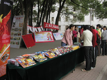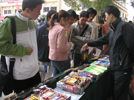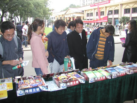 10月22日上午,武漢分公司來(lái)到華中師范大學(xué)。九點(diǎn)半,已經(jīng)有不少商家開始布置展臺(tái)了,我們也趕緊將產(chǎn)品一一擺放出來(lái)。