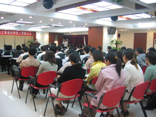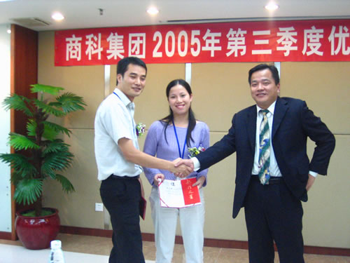 在這樣一個(gè)金秋收獲的季節(jié)里,商科集團(tuán)第三季度的優(yōu)秀員工表彰大會(huì)于2005年11月1日在廣州天河北光大銀行大廈的會(huì)議中心隆重舉行。商科總部的全體工作人員和廣州分公司所有員工無不到場(chǎng)。