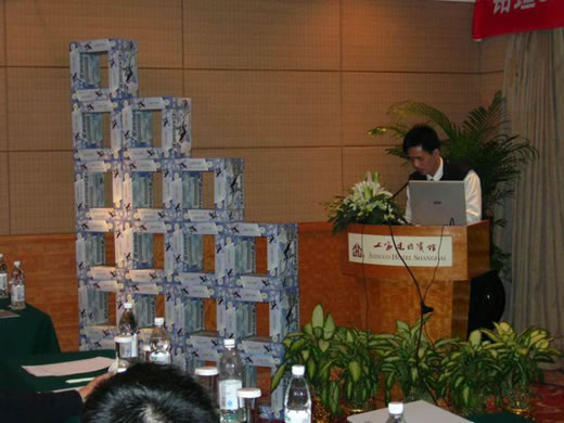大家注意沒有,會場的堆頭極富藝術氣息,令人感覺一新。堆頭作為終端賣場的一種展示,還是具有相當重要的意義,這也體現了商科注重細節的表現。目前銘瑄顯卡已啟動了完善的品牌建設計劃,加強了市場推廣方面的工作,銘瑄顯卡2005年所取得的成功也與這密切相關。