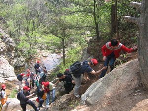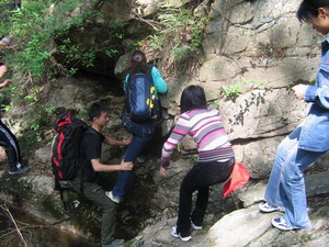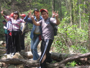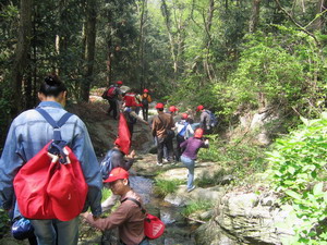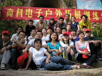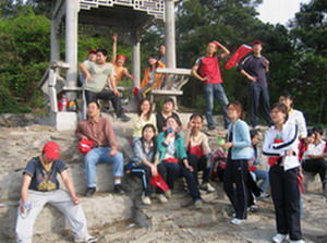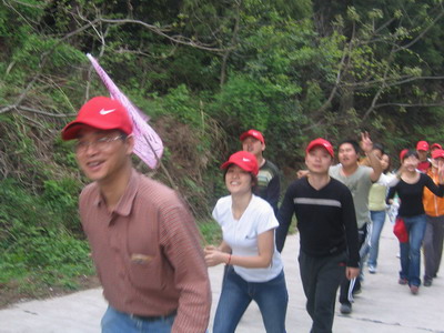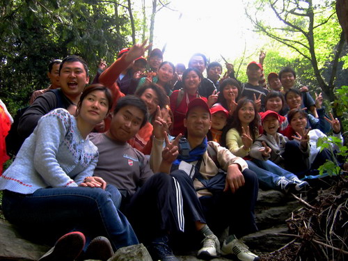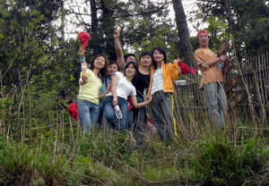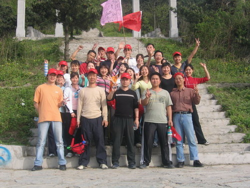 在春天的腳步已來臨之季,讓我們一同從城市的喧囂、工作的壓力中掙脫出來,2006年4月16日武漢商科一行25人,踏上勇敢者之路, 在兩天的拓展活動中,真切地體驗到團隊的存在和原來的真實自我,每一次的獲取都讓我們感動……來,和我們一同感受“共同面對問題,共同分享快樂!”吧。‰p峰山主峰由兩座對峙且相鄰的峰嶺組成,海拔888米,為孝感市第一高峰,相傳為董永、七仙女"仙化"而成,其森林繁茂,氣候宜人,素有"仙源"之美譽。