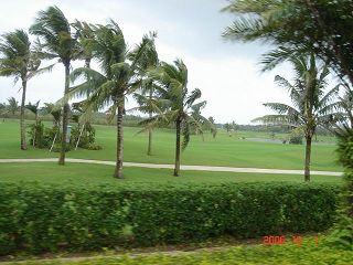 受臺風的影響,椰樹顯得有點不耐其煩,這是海南最大的博鰲高爾夫球場