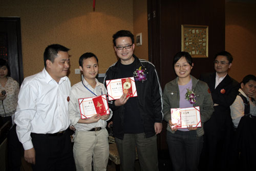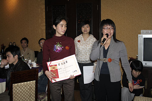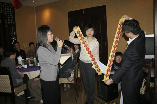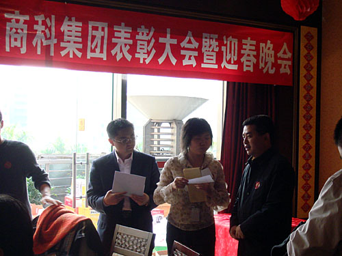 晚會開始前商科集團領(lǐng)導(dǎo)對本年度表現(xiàn)優(yōu)秀的員工進行了嘉獎和表彰他們是:第四季度部門之星:技術(shù)部 :敖亞軍、業(yè)務(wù)部:吳翠、市場部:臧永剛,第四季商科標(biāo)兵:財務(wù)部:羅春菊,第四季度銷售標(biāo)兵 :田勇,2006年度杰出員工:馮燕蘭,優(yōu)秀職能經(jīng)理 :楊毅,優(yōu)秀經(jīng)理 : 邵清泉
