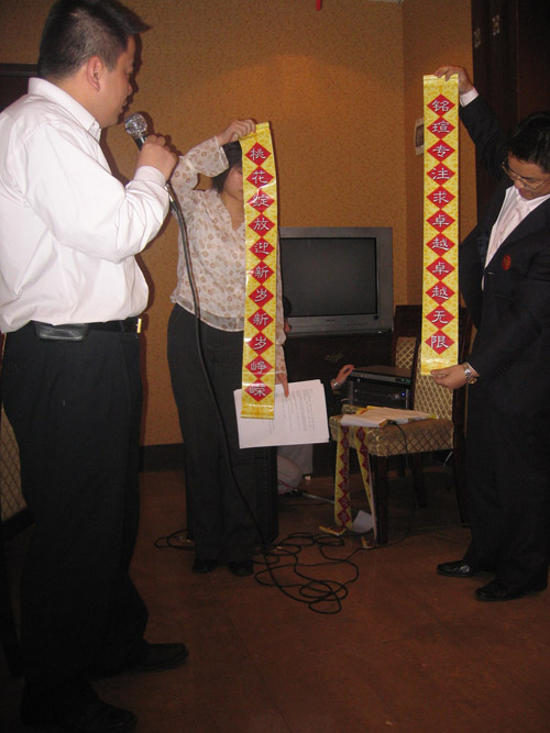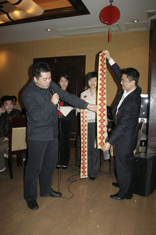 表彰大會結(jié)束后,進入了豬年迎春晚會的階段,首先進行了傳統(tǒng)風(fēng)味濃郁的對聯(lián)節(jié)目。