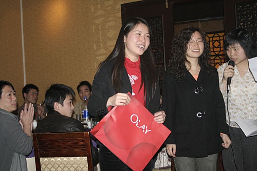 晚宴結(jié)束后,大會的最令人興奮的抽獎活動便拉開了帷幕。公司為本次大會準(zhǔn)備包括現(xiàn)金大獎、名牌手表、高檔化妝品,小家電、數(shù)碼MP3、U盤在內(nèi)的豐富獎品。