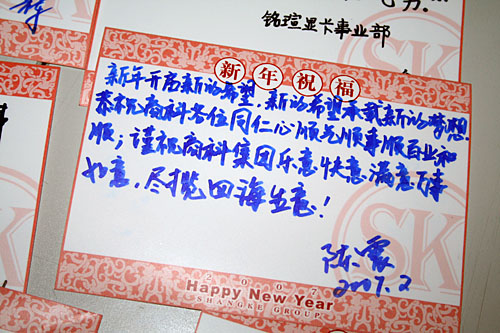 商科同仁們帶著高興與快樂的心情,紛紛在賀卡上寫下了自己對公司的美好祝愿后,帶著自己的獎品及美好的心情,以及對2007年熱切的期待,秩序離開會場。我們也祝福商科公司在新的一年里更上層樓,為社會的經(jīng)濟(jì)發(fā)展做出更大的貢獻(xiàn)與發(fā)展。
