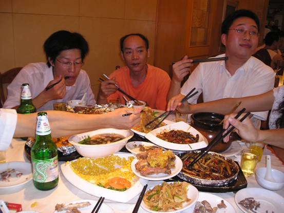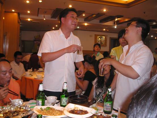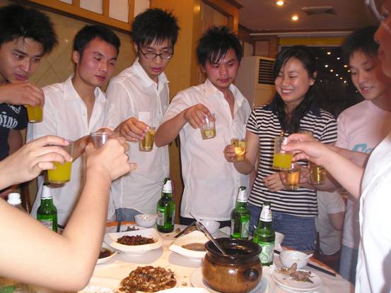 不能光顧著吃菜呀,菜可是用來下酒的,來!白酒滿上!先干為敬!