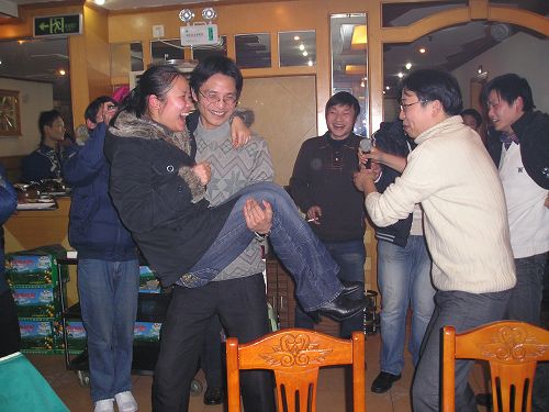 嘿嘿,獎品也不是白拿滴,總得付出點,以下便是他們表演的節(jié)目了,反串,豬八戒背媳婦,花樣真不少