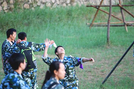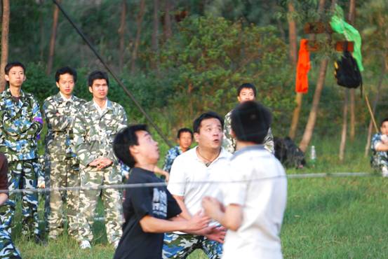 飛奪瀘定橋。這個項目是從高空的木板橋上通過,木板的間隙比較大。看似簡單,但是很多人站上去,雙腿就開始不由自由的哆嗦,這很能鍛煉人的勇氣哦。 這個項目讓許多人有一點害怕,但是當有的同事在上面感到恐懼的時候,下面的同事齊心協力的為他加油打氣,增加他的信心和勇氣。在大家的鼓勵下,同事們一一通過了這個項目。