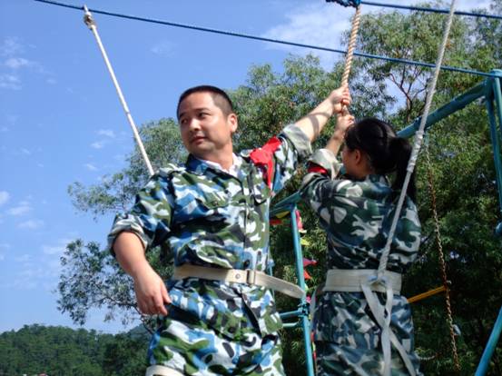 為了豐富員工的生活,同時加強同事之間的了解、信任和團結,商科集團于11月8號、9號兩天,在花都芙蓉度假村舉辦了戶外拓展活動。商科各地分公司部分同事及總部各部門全體員工參加了這次別開生面的活動。 這次活動安排了定向越野、排球、拔河、基地拓展等一系列的豐富多彩的內容。集休假放松、適度的探險、體育運動、拓展游戲等多種項目為一體,不僅使員工們得到了充分的休息,而且也讓大家從中學習和感受到在辦公室里沒有的體驗。 活動于11月8號的7點30分開始,全體員工按時到達廣州商科集團總部,光大銀行大廈門口集合,乘坐豪華旅游大巴前往位于花都的芙蓉度假村。 ![]() 圖說:商科全體員工搭乘豪華旅游大巴來到花都芙蓉度假村 在到達花都芙蓉度假村之后,首先入住酒店,稍事休息和調整。 10點整,全體員工再次集合,乘坐大巴來到山頂的拓展訓練基地。 在到達基地后,大家換上基地準備好的迷彩服,正式開始了為期兩天的拓展訓練活動。