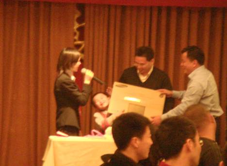 最后大獎(jiǎng)是一臺(tái)32寸的顯示器,幸運(yùn)之神會(huì)眷顧誰(shuí)呢?馬上將揭曉....5,4,3,2,1,汕頭創(chuàng)捷林總,恭喜!