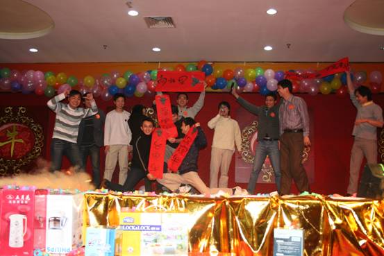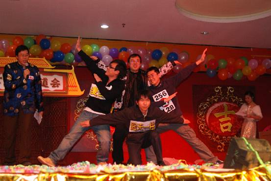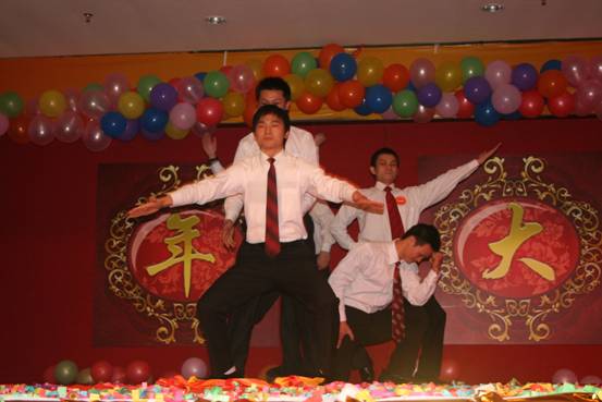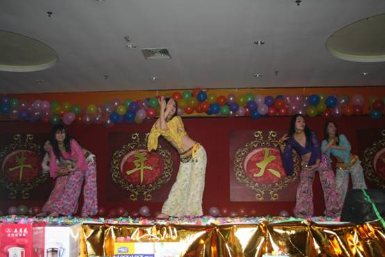 頒獎(jiǎng)活動(dòng)結(jié)束后,迎春晚會正式開始。首先是公司美女們的舞蹈節(jié)目,為了排練這個(gè)節(jié)目,公司的姐妹們連續(xù)幾晚都自發(fā)留在公司里辛苦演練。