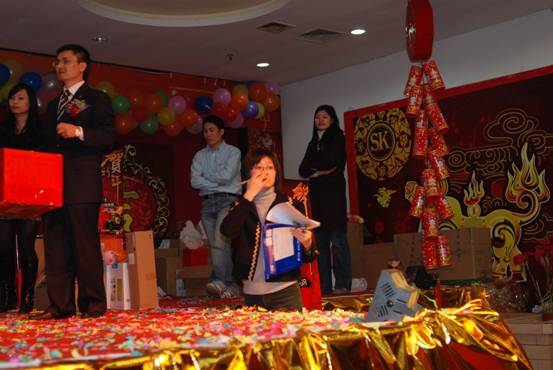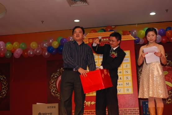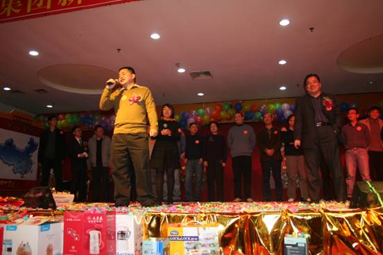 在歡聲笑語中,在聲聲祝福聲中,同事們喜氣洋洋的領(lǐng)著自己的獎品及幸福的心情,離開會場。在這一個喜慶的晚會中,我們?yōu)檫^去一年中取得的成績感到驕傲,我們分享收獲的喜悅。我們?yōu)樾碌囊荒曜8#覀冦裤匠錆M希望的2009。讓我們共同祝福商科集團(tuán)在新的一年里百尺竿頭更進(jìn)一步,為公司、為員工、為經(jīng)銷商、為顧客、為社會做出更大的貢獻(xiàn),讓我們共同努力,把世界變得更美好。