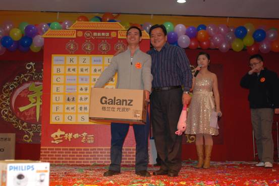 本次晚會商科集團(tuán)準(zhǔn)備了豐盛的禮品和獎項,包括微波爐、IKEA家具、高檔廚具、名牌手表、高檔化妝品、現(xiàn)金等,而且各部門經(jīng)理也要為大家奉獻(xiàn)愛心現(xiàn)金獎,中獎率高度95%哦!