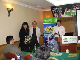 另外楊成先生還抽出本次培訓會的第一個大獎, 銘瑄9500GT高清版顯卡一片, 及NV精美腰包一個。