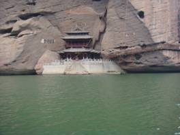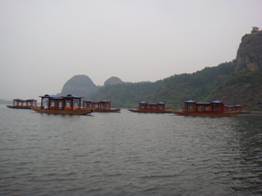 右圖:瀘溪河崖邊的懸棺表演處