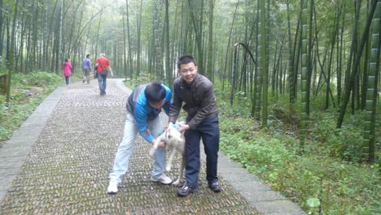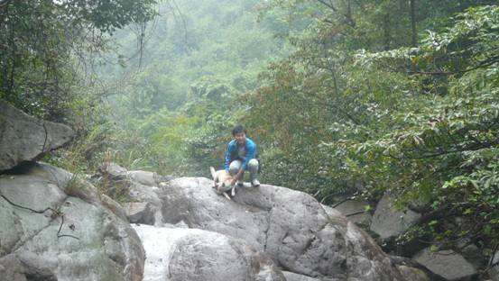 這個狗狗,我們給他取名叫做小白,小白還有一個兄弟姐妹叫做小黑,它們一直陪著我們上到了山上,可是小黑不愿意跟我們合照,不知道是不是小黑覺得我們當中沒有一個帥哥、美女。