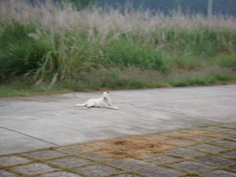 小白趴著,目送我們上車……..