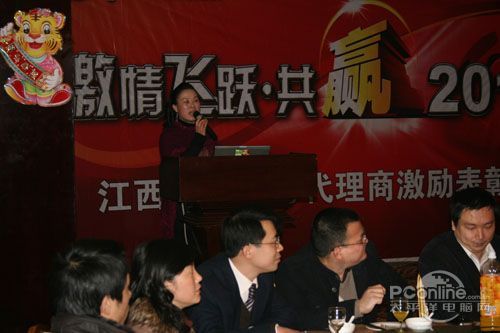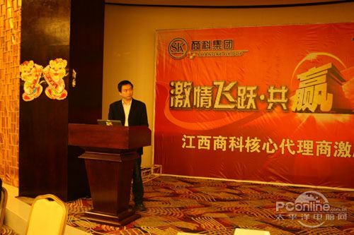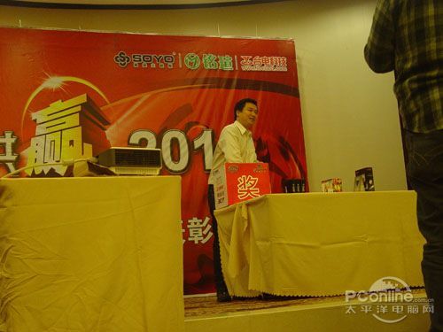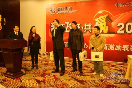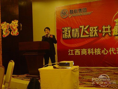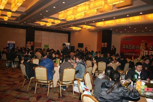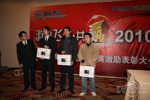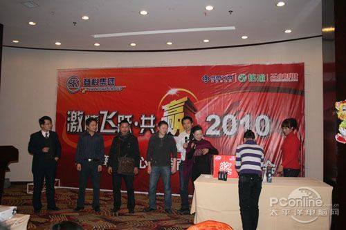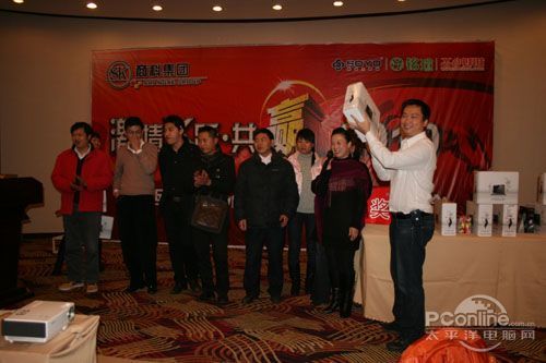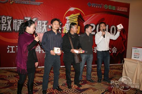 本次會(huì)議有眾多經(jīng)銷商應(yīng)邀赴會(huì),更有來自NVIDIA和intel的嘉賓光臨現(xiàn)場,其中包括來自NVIDIA公司的彭華先生,以及INTEL公司的吳偉先生。而我們太平洋電腦網(wǎng)江西站作為到會(huì)的媒體代表,也被作為嘉賓介紹給大家。與上面的幾位重量級(jí)人物一起被主持人隆重介紹給廣大商家,筆者實(shí)在是感到有點(diǎn)汗顏!會(huì)議首先由NVIDIA公司的彭華先生為大家介紹阿凡達(dá)與NVIDIA的淵源(原來《阿凡達(dá)》出色的CG效果可是由NVIDIA的顯卡打造而成的)以及NVIDIA公司的新技術(shù)與政策。然后再由江西商科總經(jīng)理吳暉先生講話,再后就是對(duì)2009年度成績突出的商科合作伙伴進(jìn)行表彰頒獎(jiǎng)(獎(jiǎng)品非常豐厚哦,竟然是臺(tái)電上網(wǎng)本)。最后就是激動(dòng)全場的抽獎(jiǎng)活動(dòng)了!