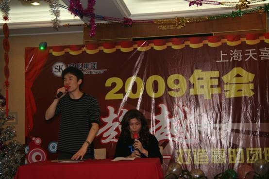 在大家稍稍填飽肚子以后,晚會在愉悅的氣氛中展開,首先孫副總對過去的成績和不足發(fā)表講話。