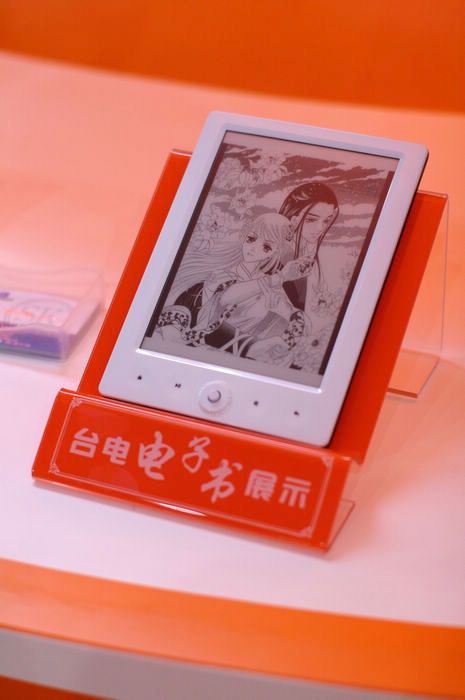 臺電K5電子是本次展會唯一的一款彩屏電子書。它采用了特殊的“半透反射式 LCD屏”不同于我們平時在MP4上看到的彩色TFT屏幕。“半透反射式 LCD屏”將每個顯示單元劃分出透光區與反射區,不僅在黑夜可以實現背光照,而且在白天強光下,屏幕也能有良好的表現。