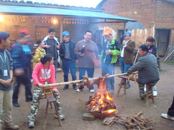 看著我們的烤全羊,盡管覺得小,還是讓大家非常興奮!