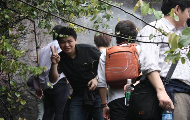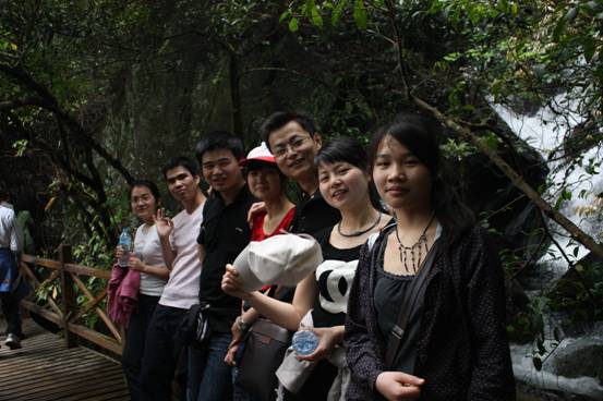 經過一番跋山涉水,大家終于爬到了白水寨的9999級(最高點哦!),大家撐起笑臉留下值得驕傲的表情。大家看看大汗淋漓、筋疲力盡的我們,是不是都很棒!(掌聲ING)