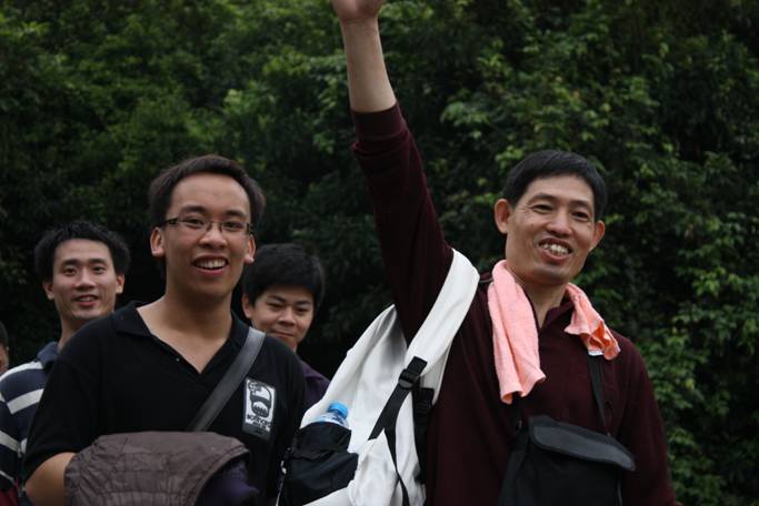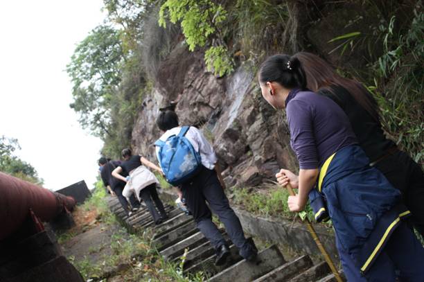 簡單的午餐后,兄弟姐妹們開始攀登白水寨“天南第一梯" 9999級石級,當然不免俗的要在“天下第一梯”前面來張大合照,這個時候的我們一個個都精神奕奕的,嘿嘿!