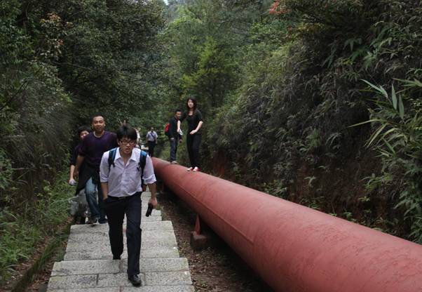 蜿蜒的山路,濕潤的石板,大家小心翼翼的爬著山路。