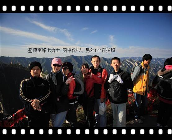 太陽出來了,觀日的撤退人潮堆滿了山路,挪回飯店,準(zhǔn)備好再次出發(fā),已近7點半。南峰我們來了,照樣9個人,呼嗤嗤的爬,原本緊張兮兮的害怕前路艱險,實際上南峰雖然是最高峰,但難度不高,路程也不遠(yuǎn),約莫8點40,9個人中7人完成登頂。