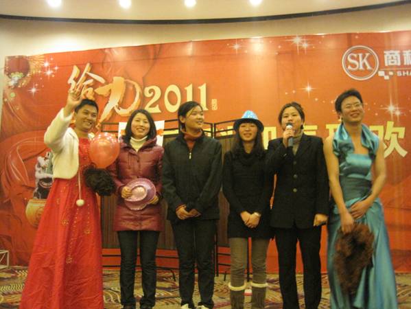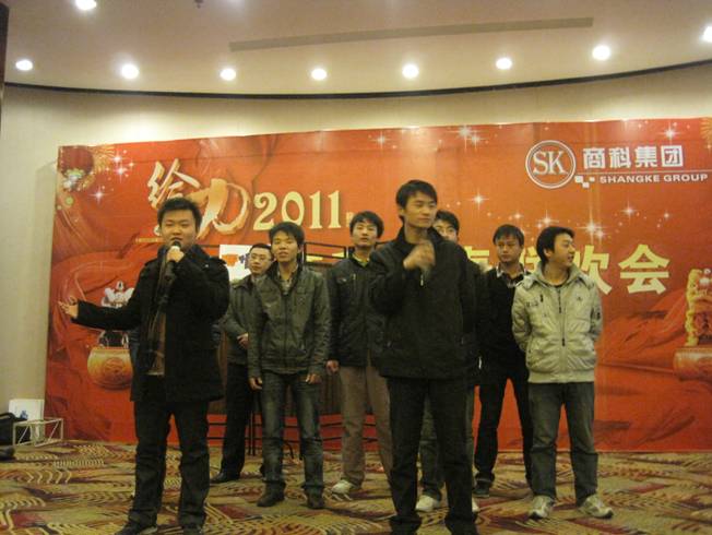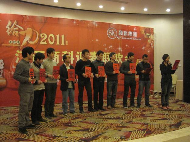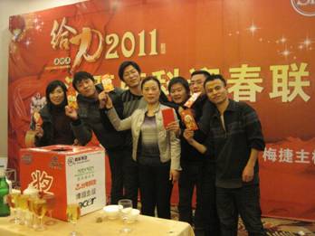 北廳門市的同事為大家帶來了詩朗誦《新年頌》,他們祝大家新年快樂,吉祥如意;2011年,大家都要給力。他們手上拿的字漂亮吧,是他們中的一位自己寫的哦,大家猜猜是誰寫的?猜對有獎。。。。。。