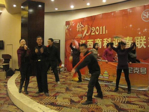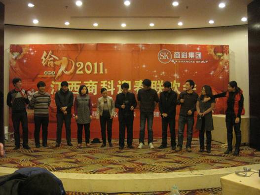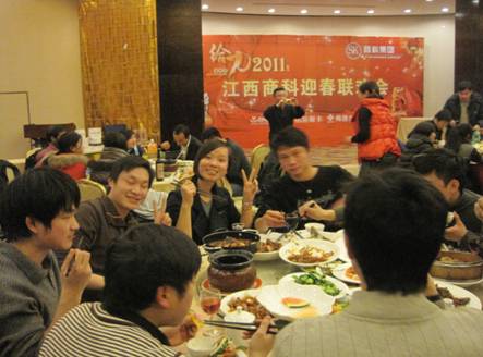 2011年元月28日,江西商科2011年春節聯歡會如期在南昌百瑞麗景18樓百瑞廳舉行。 聯歡會分為三部分:文藝表演、晚宴、抽獎。 猛虎辭舊歲,玉兔迎新春;冰雪封不住青春的熱情,2011正隨春潮滾滾而來,希望所有的同事能在兔年里心想事情,事事順利。