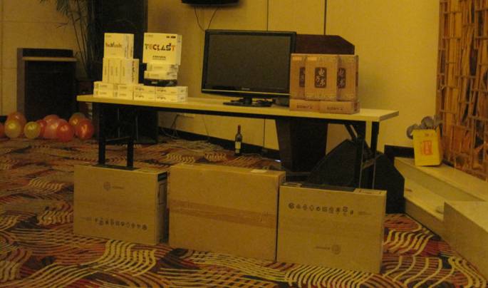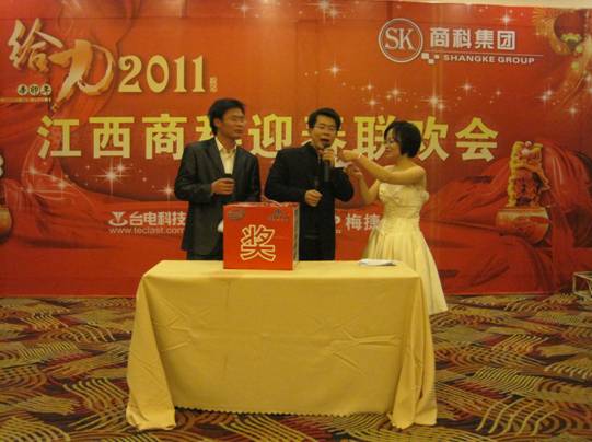 年會抽獎品:液晶電視、顯示器、電子書、臺電數碼播放器、電話卡、臺電攝像頭。。。。。,很豐富呀,