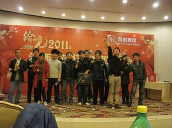 倉儲部的節目,歌舞表演《纖夫的愛》,這個里面角色很齊嘛!除了兩位唱歌的外,還有兩位纖夫, 兩位妹妹,船里頭還有三個人物,也應該算是妹妹了吧。 之前本來打算弄個木船的,后來想想,2011新的一年要有新的氣氛,我們就將把他變成了泰坦尼克號了, 希望我們公司所有同事和自己的愛人之間的感情既能像杰克和露絲那樣浪漫,有能像纖夫和妹妹那樣堅定長久。 本節目榮獲三等獎。