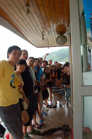 11:00多終于到達了清遠,導游先安排飛來寺沿江觀景,游船上進餐;聽導游說飛來寺燒香拜佛有點投機取巧,誆人錢財的味道,所以沿江觀看并未入寺拜佛,呵呵。。“酒肉穿腸過,佛祖心中留。。”