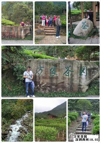 據(jù)當(dāng)?shù)貙?dǎo)游介紹,“方家茶園”乃是香港無線電視臺《茶是故鄉(xiāng)濃》的外景拍攝地,因為賀州姑婆山良好地氣候和土質(zhì)等因素,造就了無污染的高山云霧茶---方家茶葉;走進依偎在群山中的“方家茶園”時,呈現(xiàn)在眼前的是一起一伏、郁郁蔥蔥的茶葉在十月溫暖的陽光下綠波閃耀的美景。。。