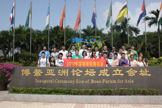 博鰲,這個地方就是每年開亞洲經濟論壇的一個場所,我們全體人員在博鰲亞洲論壇會址前來了一張集體大合影;