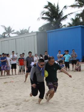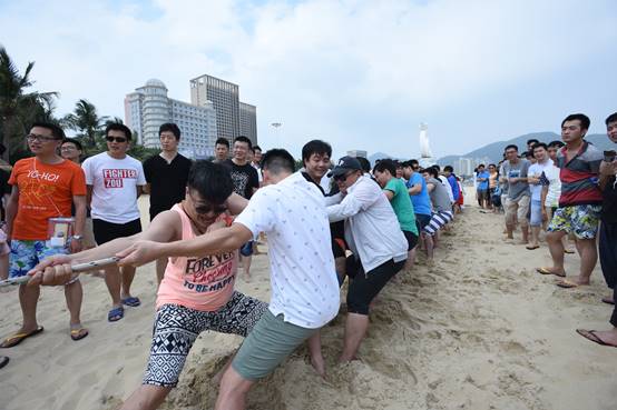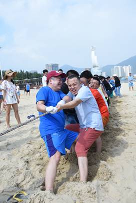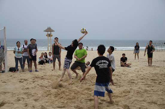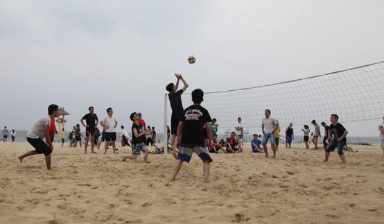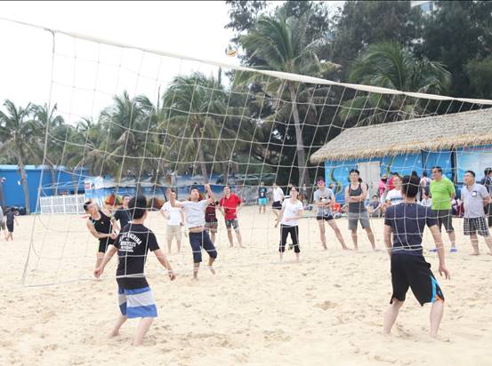 頭頂藍(lán)天,沐浴陽光,具有競(jìng)技性的沙灘排球比賽開始了,大家光著腳板在金色柔軟的沙灘上,盡情的跳躍、翻滾、流汗,享受著這美妙的時(shí)光,充分釋放自己的好心情。
