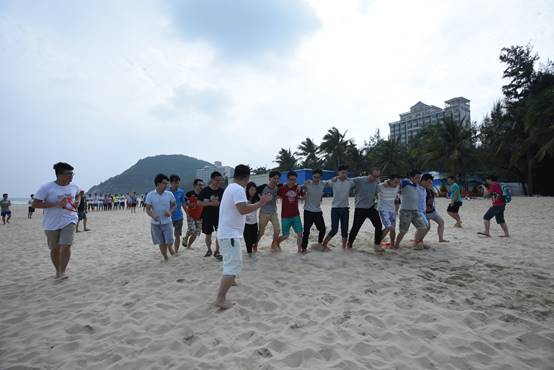 到了海邊,除了體驗(yàn)美麗的海島風(fēng)情,當(dāng)然還要享受海鮮大餐,魚蝦蟹貝,美味的晚餐盛宴,讓大家大飽口福。大快朵頤之后,開始了篝火晚會(huì)。在海灘上,伴著陣陣的濤聲,歡快的音樂聲,大家挽著手,環(huán)成圈,跑著,跳著,忘卻一切壓力與煩惱,盡情歡暢。期間,還對(duì)下午比賽勝出的隊(duì)伍進(jìn)行了頒獎(jiǎng),沒有獲獎(jiǎng)的隊(duì)伍也不要沮喪喲,你們都是最棒的!