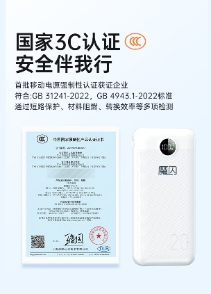 此外,魔閃20充電寶在安全性能上也毫不妥協。采用了先進的智能芯片,能夠實時監測充電狀態,有效防止過充、過放、短路等問題的發生,更重要的是,通過了國家3C認證,確保您的設備和充電寶的安全。